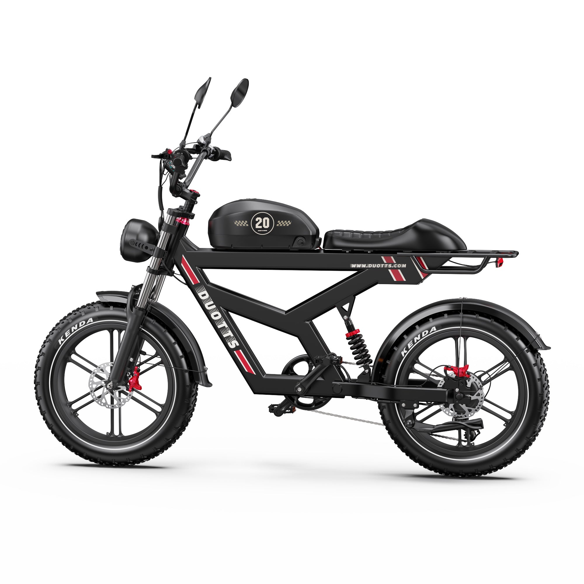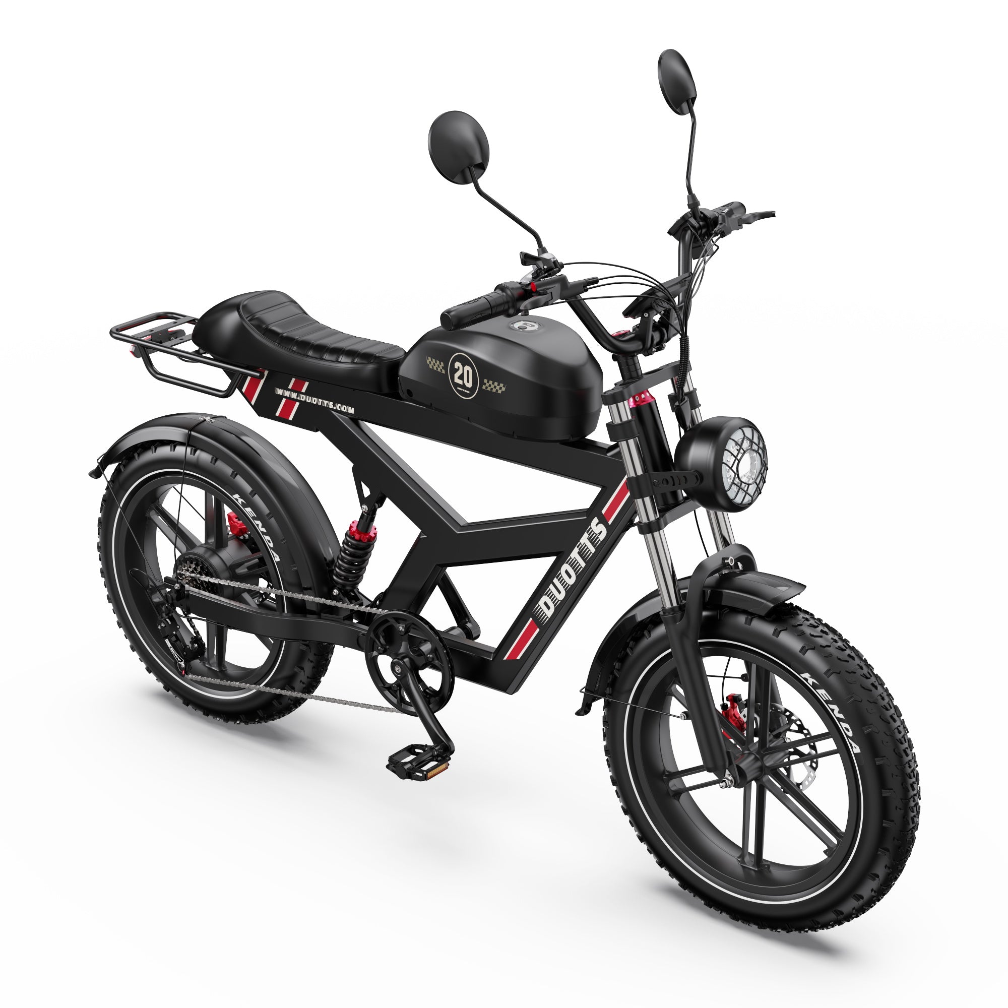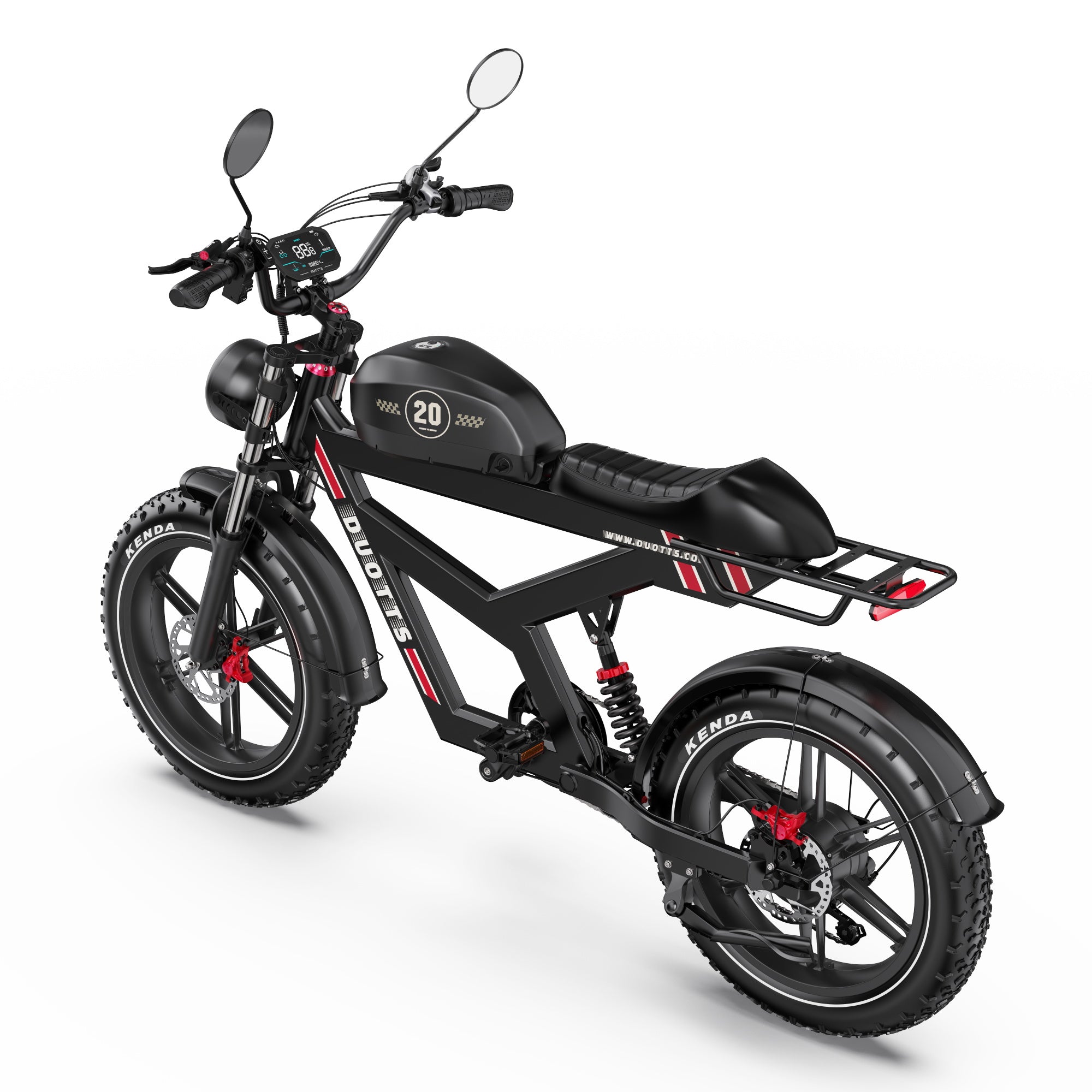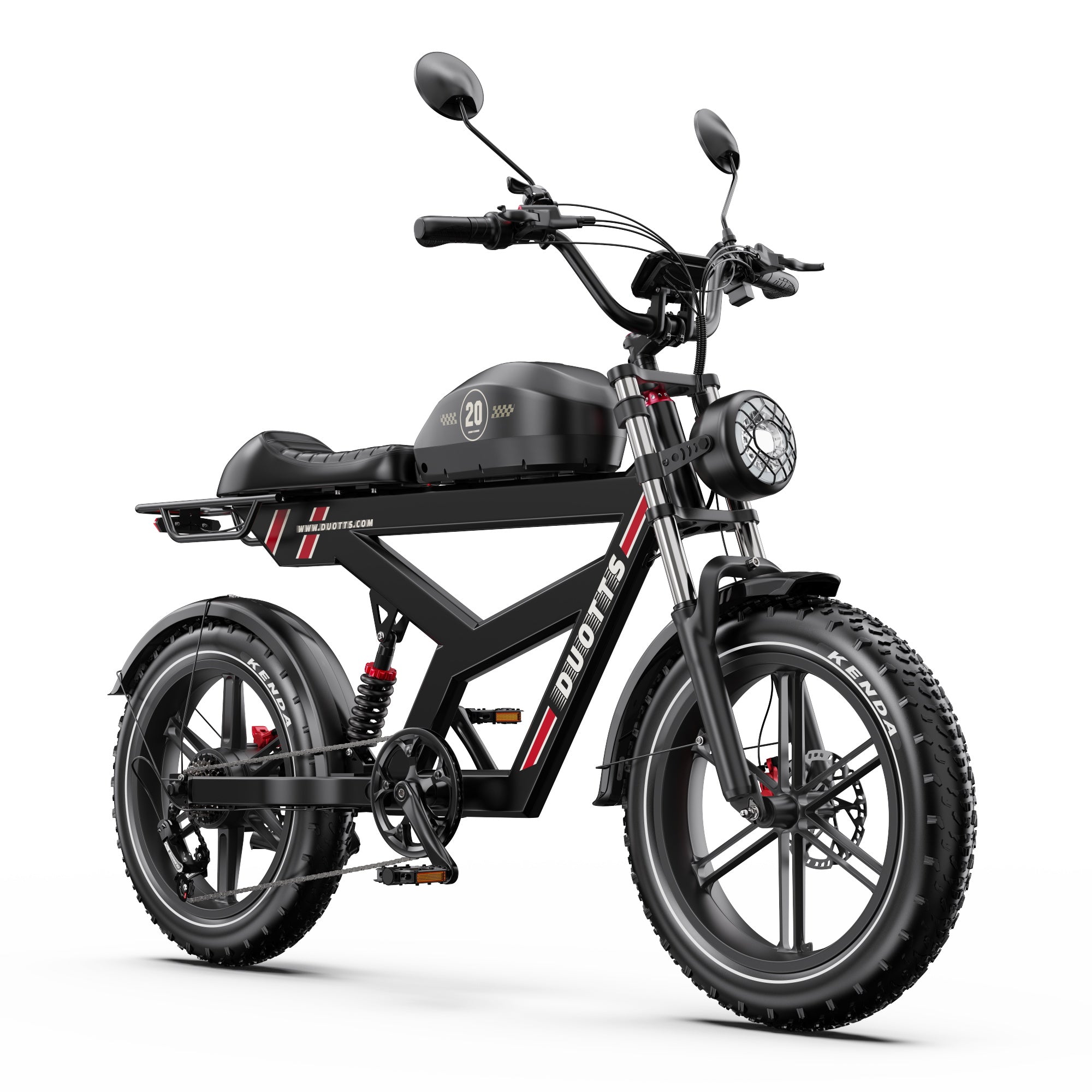 The DUOTTS F20 electric bike combines stylish looks with a full suspension system, perfectly blending form and function. Enjoy elegant rides and experience the charm of vintage elegance on every journey.