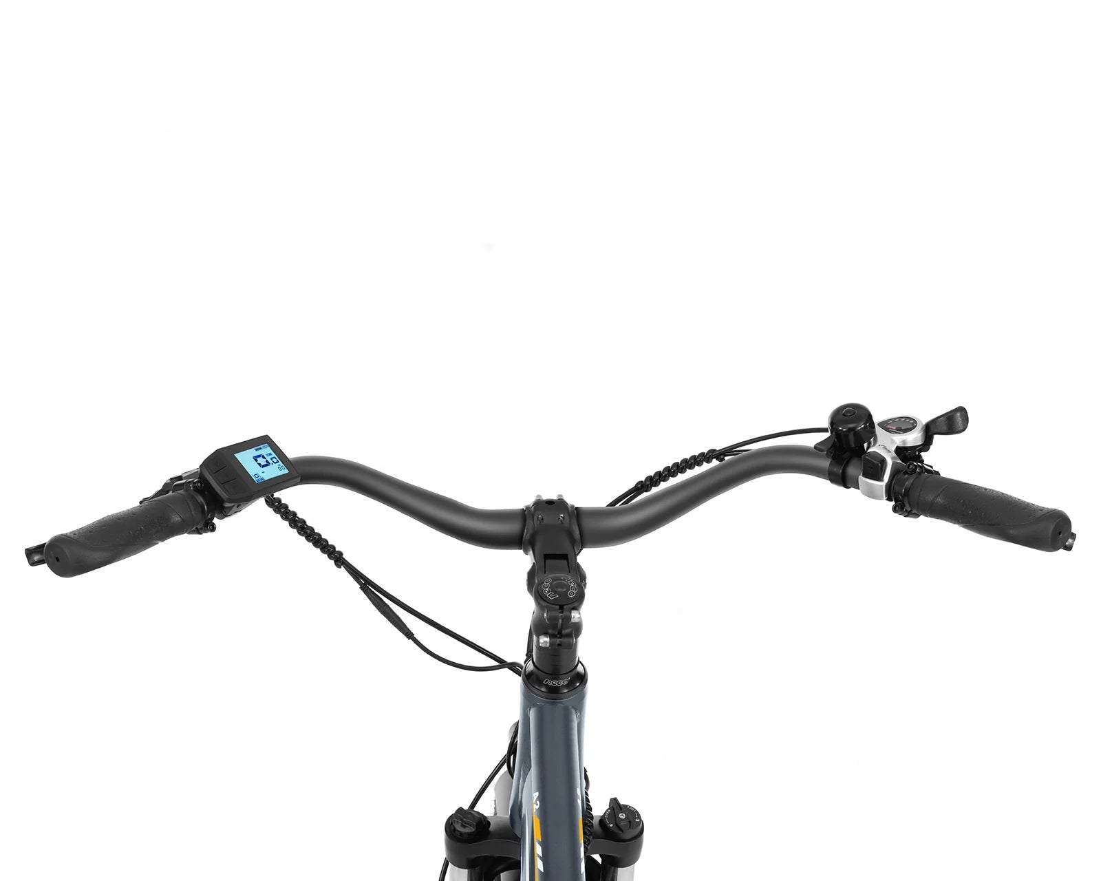 The bike rolls on 27.5"x2.1" pneumatic rubber tires, designed to provide grip, durability, and a comfortable ride. The recommended tire pressure is between 30–45 PSI, with the best performance at 35–40 PSI. These tires are suitable for city streets as well as light off-road paths, giving versatility to your rides.